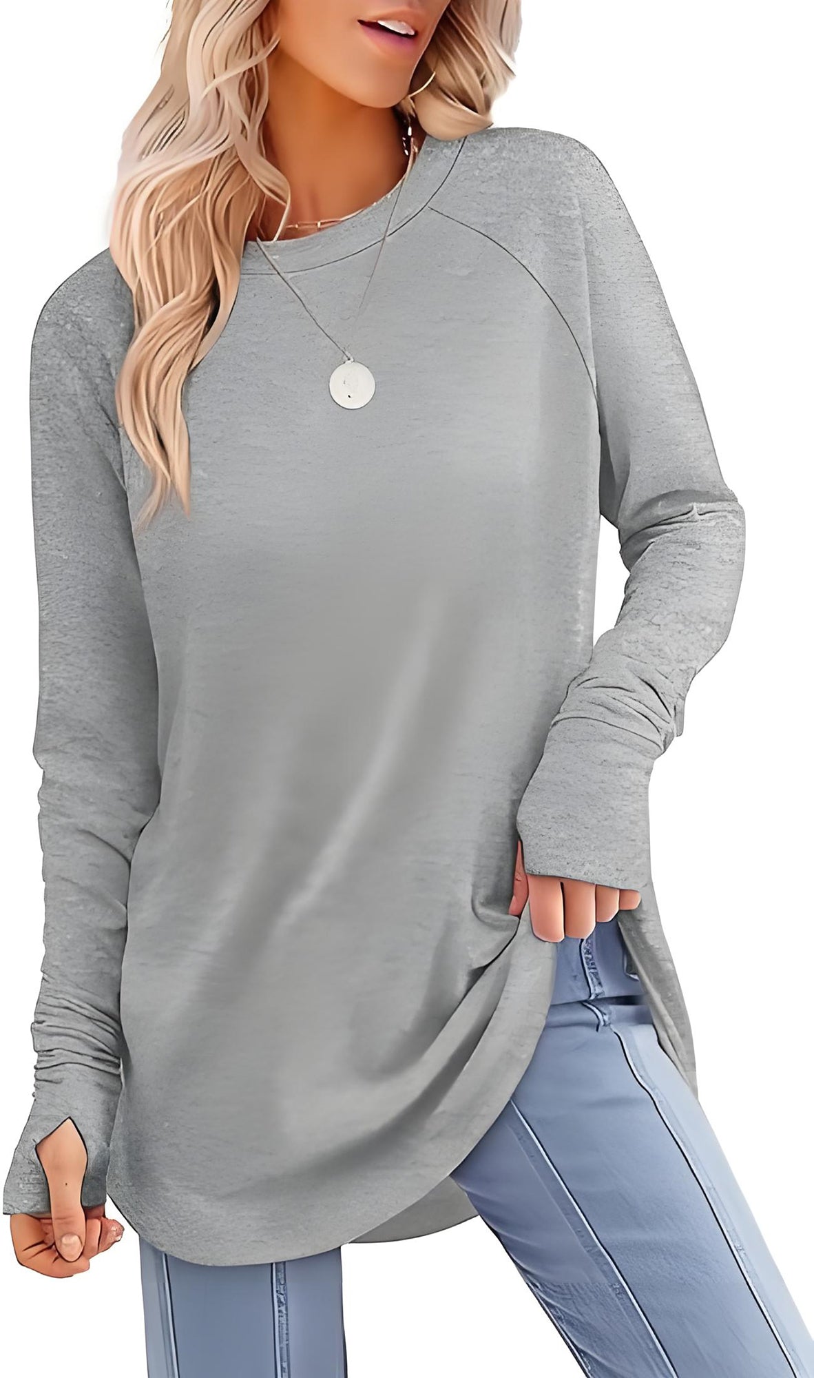 ✨Best-1 Sale Tops Fall 2025✨Womens Tunic Tops to Wear with Leggings Long Sleeve Thumb Hole Shirts Crew Neck Curved Hem
